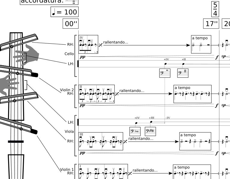 Edit: This piece has been performed by Latenz Ensemble during the 2021 impuls Festival. Following that performance, I made an update and revision of this piece – Four Strings and Other – which you can check out in that link.